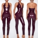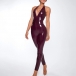 This jumpsuit features a halterneck design that accentuates the shoulders and adds a touch of allure and sophistication to your look. The V-neckline is sexy and flattering, creating a stunning silhouette that is perfect for a night out or a special event.