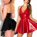Sexy Halterneck V-neck Backless Ruffle hemline Artificial Leather PU Dress