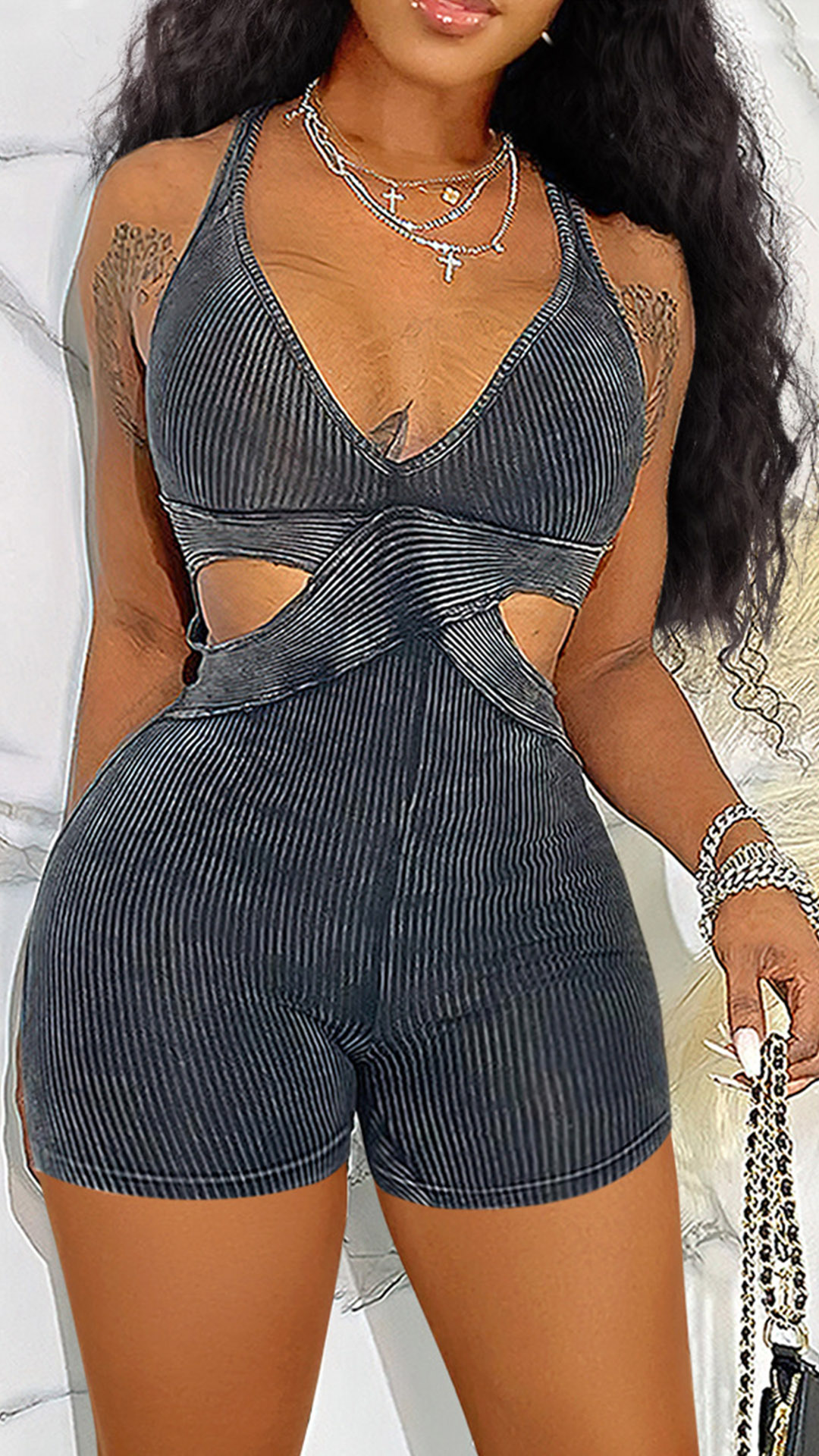 Sexy Halterneck V-neck Side Cutout Ribbed Romper