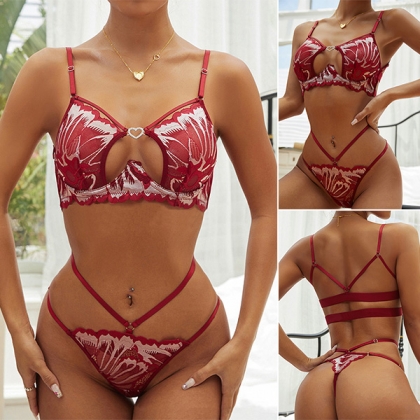 Sexy Heart Cutout Cross-criss Two-piece Lingerie Set