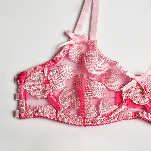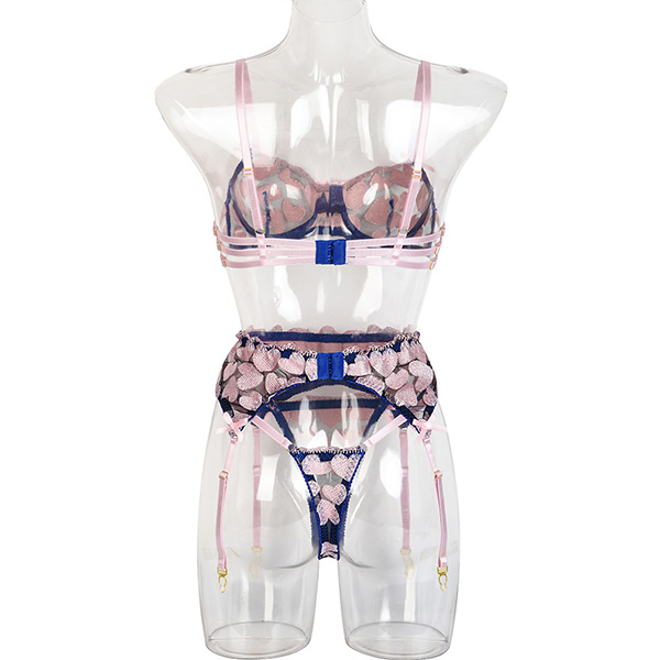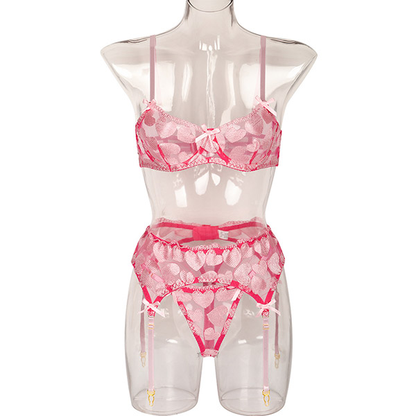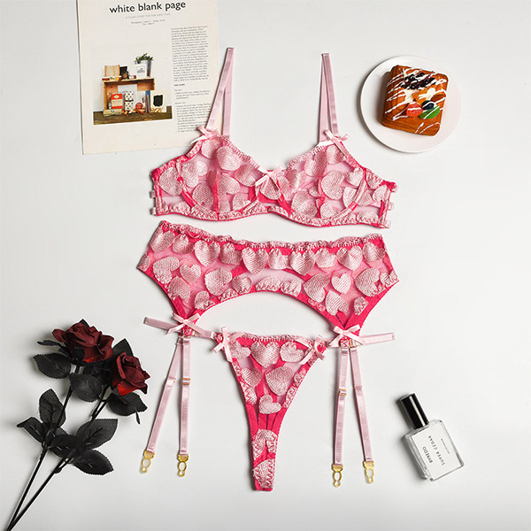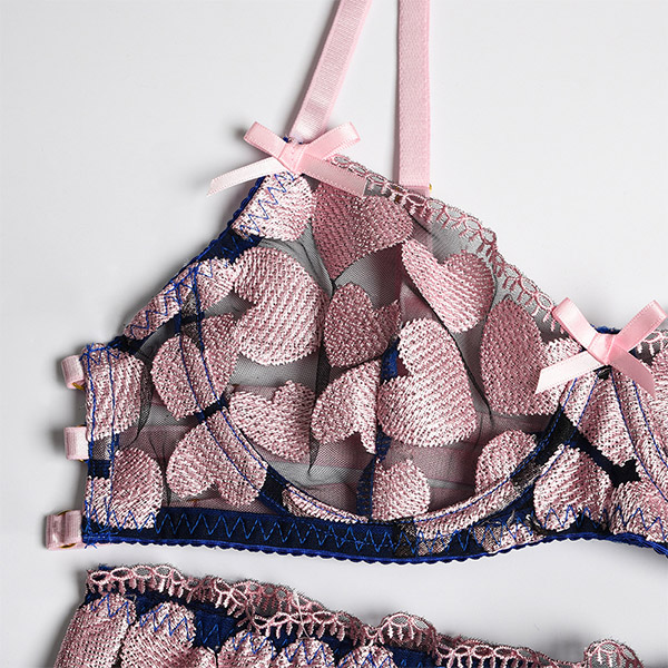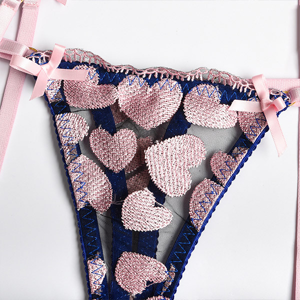 Sexy Heart Embroidery Lingerie Three-piece Set