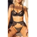 Sexy Heart Embroidery Three-piece Lingerie Set