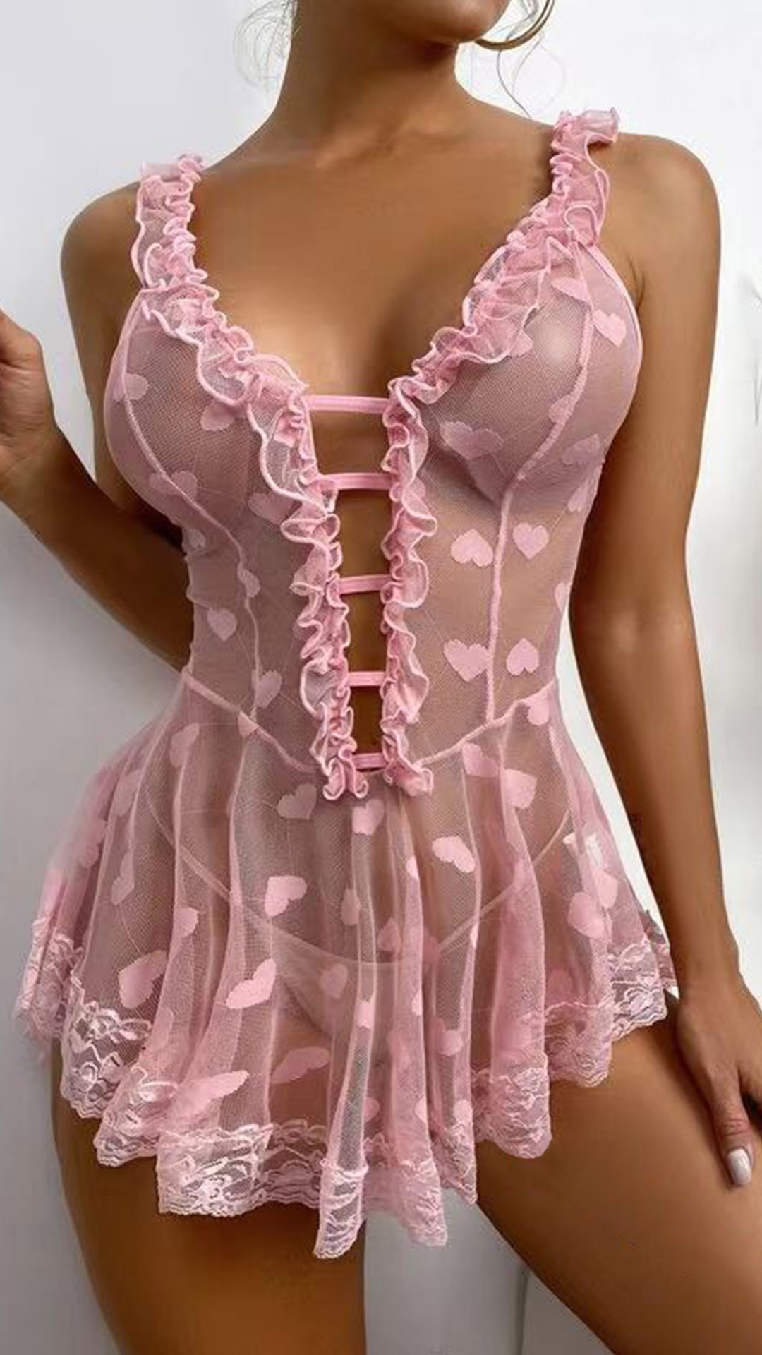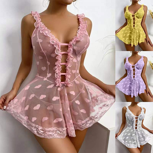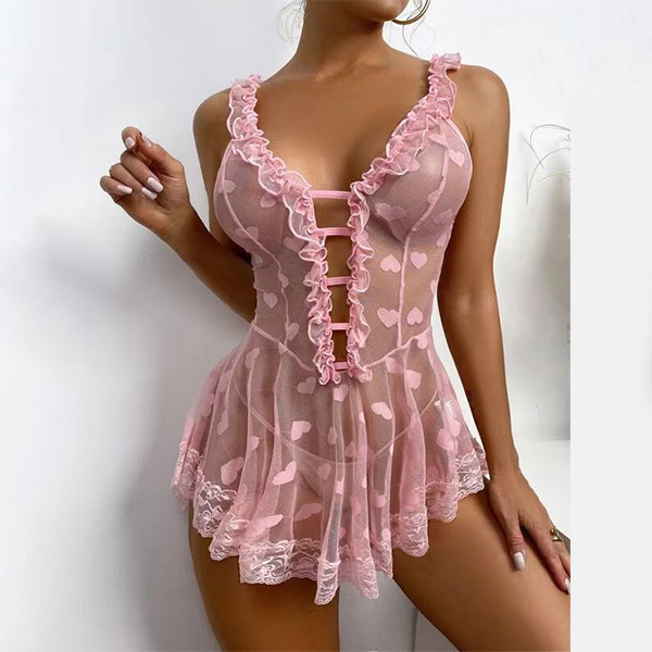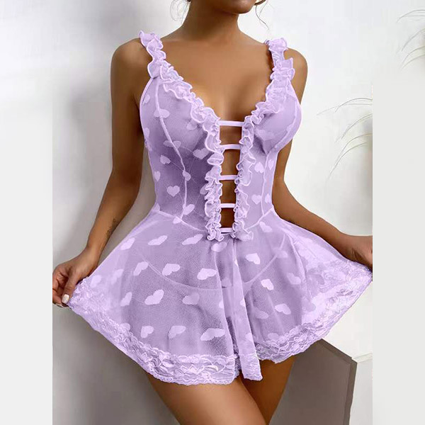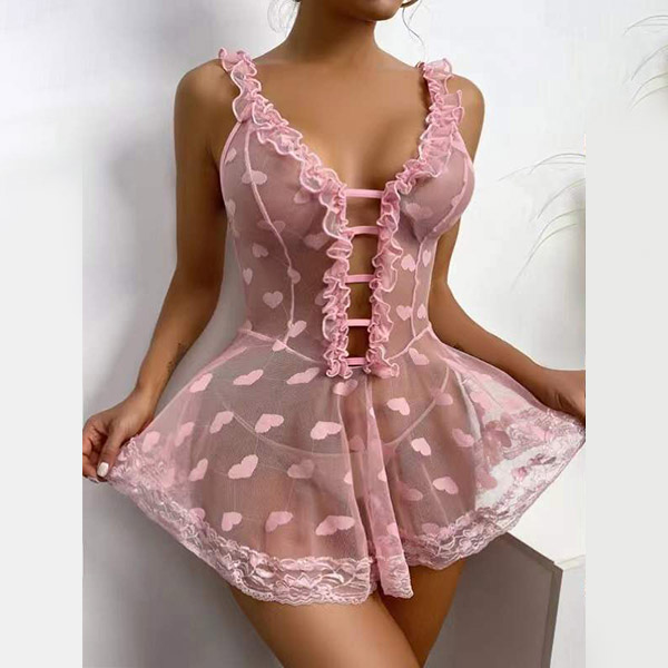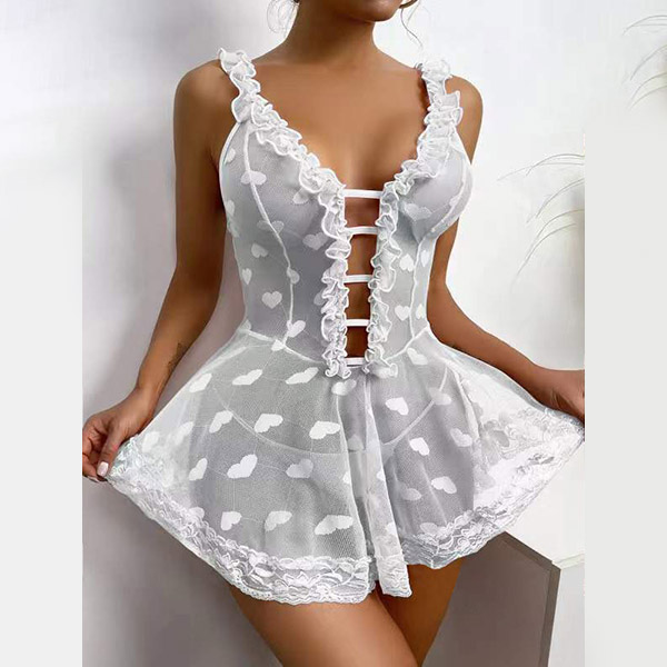Sexy Heart Pattern Ruffle Semi-through Gauze Dress