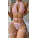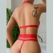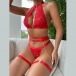 Sexy Heart Shape Ring Chain Lace Three-piece Lingerie Set