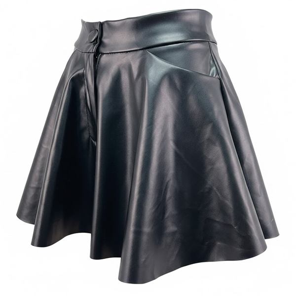This striking shorts features flattering high-rise waistline with dramatic ruffle detailing and structured artificial leather construction for contemporary edgy sophistication. Pair with fitted tops and ankle boots for contemporary edgy appeal.