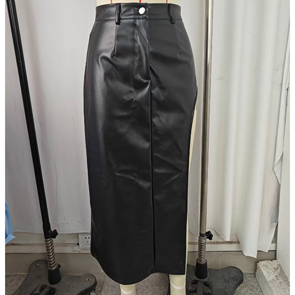 Sexy High-rise Side Slit Irregular Artificial Leather PU Skirt