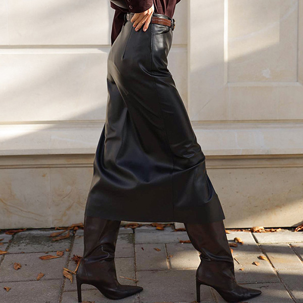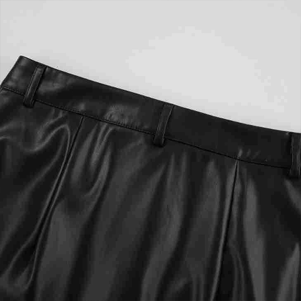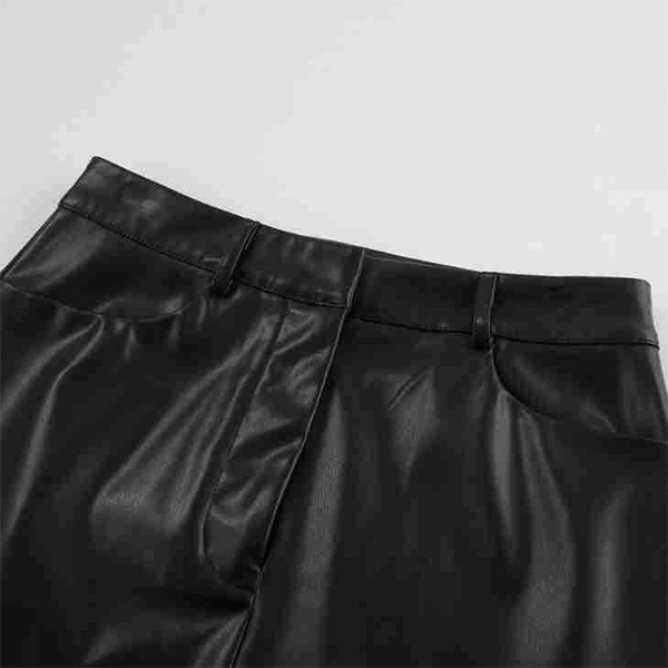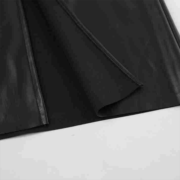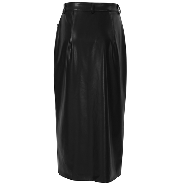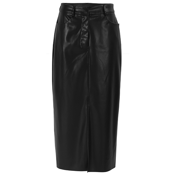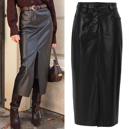 Crafted from high-quality artificial leather PU material, this skirt offers a sleek and shiny appearance that mimics the look of real leather. With its front slit, this skirt adds a flirty and alluring element to your look.