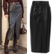 Sexy High-rise Slit Artificial Leather PU Skirt