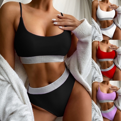 Sexy High-waist Contrast Color Bikini Set
