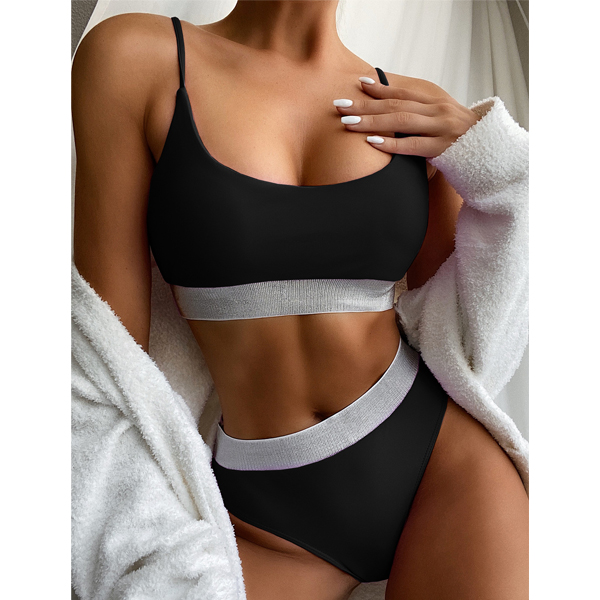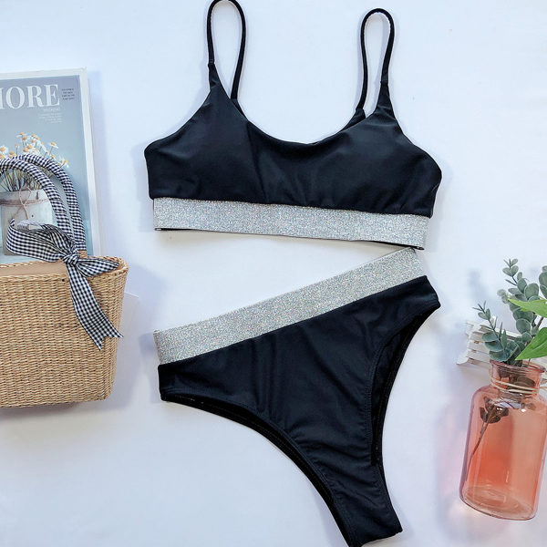 For your beach days and tropical getaways,this bikini set can be your wise choice. Contrast color element design makes it look more stylish and attractive. Including a sling bikini top and a high waist bikini bottom,this bikini set is a good weapon to flaunt off your sexy and seductive curve. Enjoy your beach trip with this bikini set!