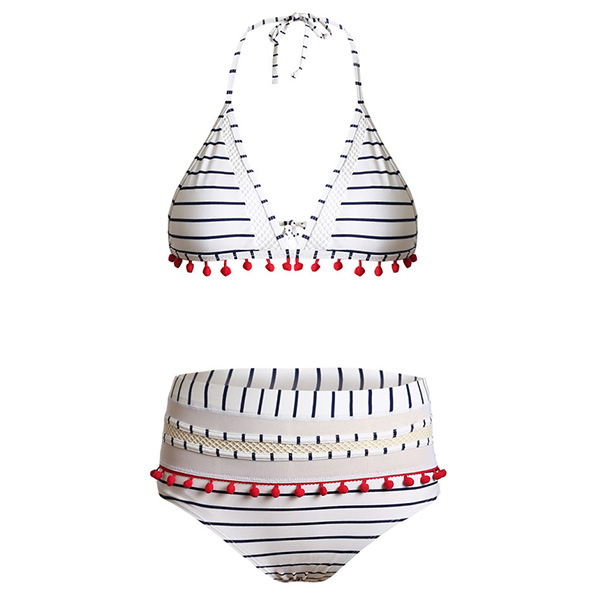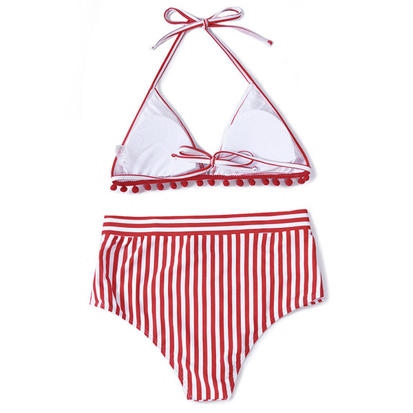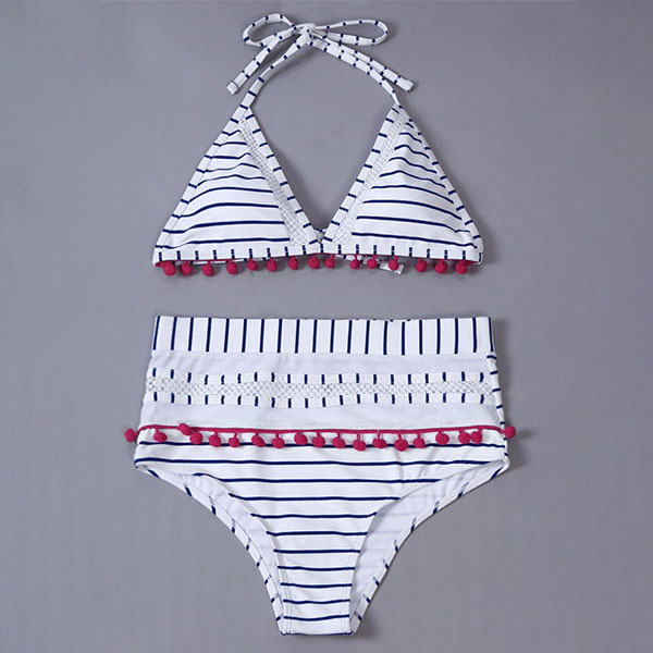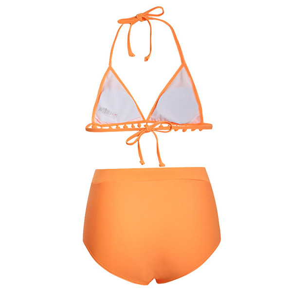 Hey,girls,you can enjoy your sun-soaked summer days with this cozy yet sexy bikini set. It consists of a high waist bikini bottom and a halter bikini top,this bikini set is sure to flaunt off your charming skin and seductive curve. When matching with a printed beach towel,you can have a more charming beach look.