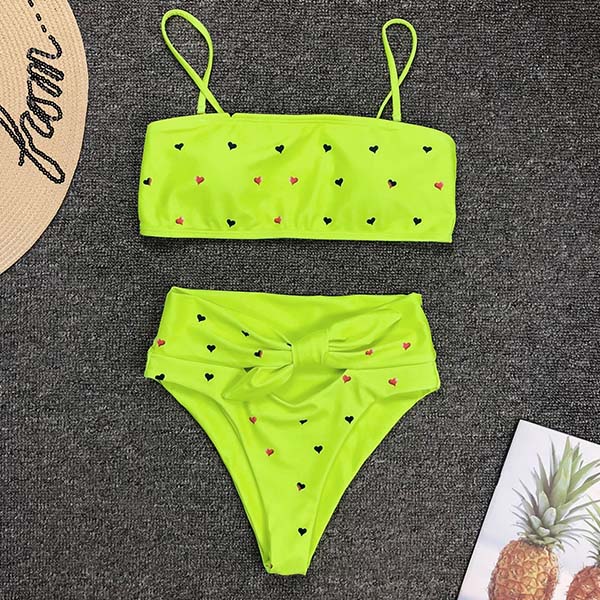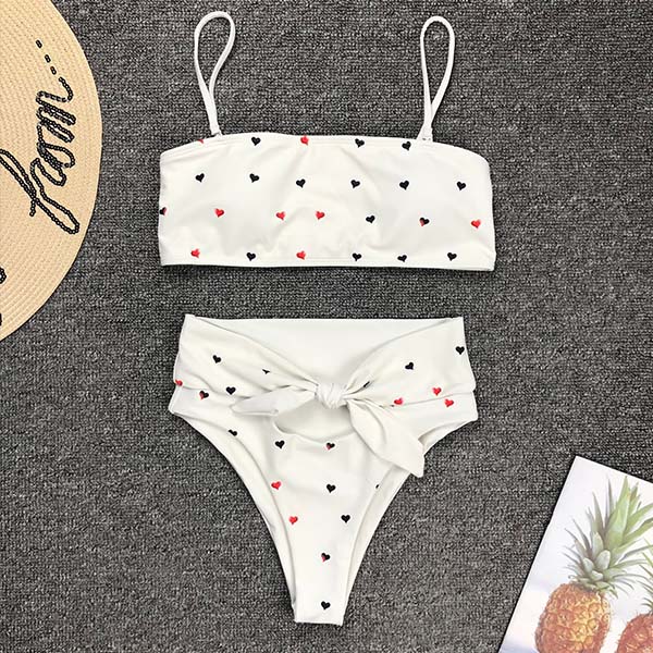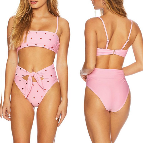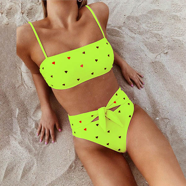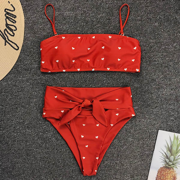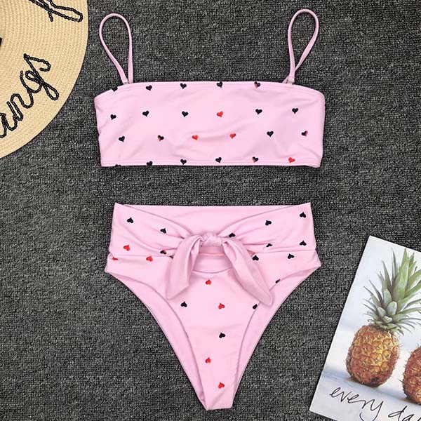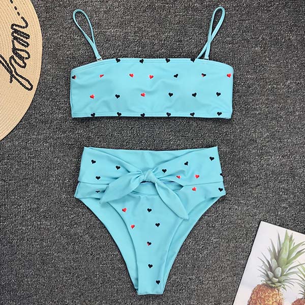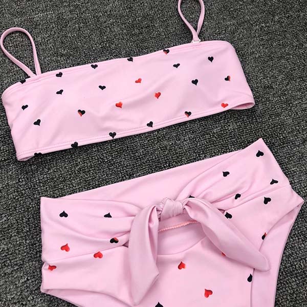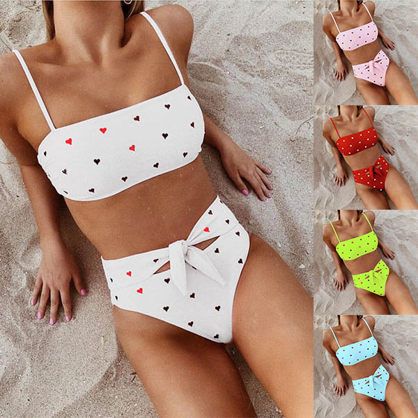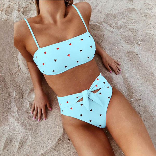 Hey,girls,wanna be a pleasant sight when walking on the beach? Then let this bikini set help you. It consists of a backless bikini top and a high waist bikini bottom,designed with heart printed details,this bikini set can help flaunt off your sexy and seductive curve.