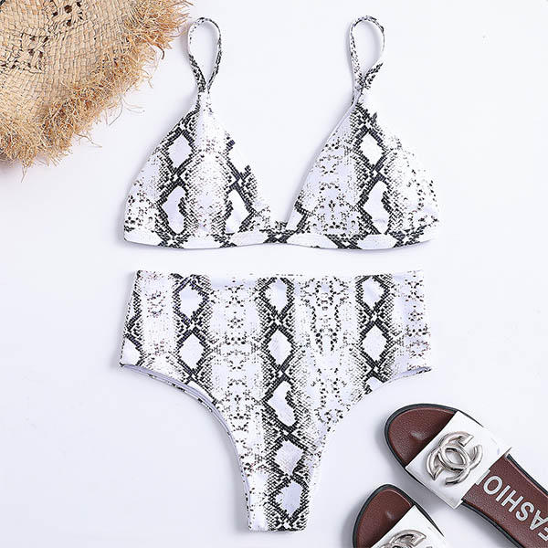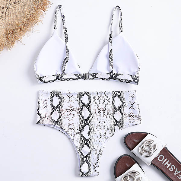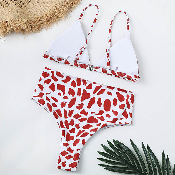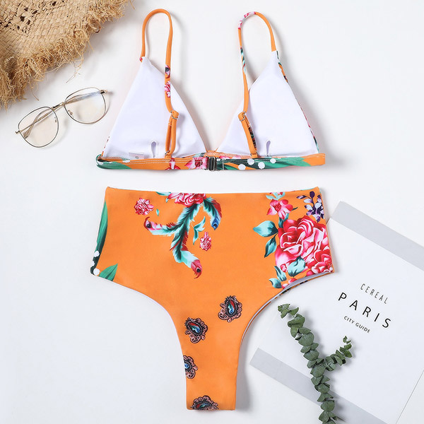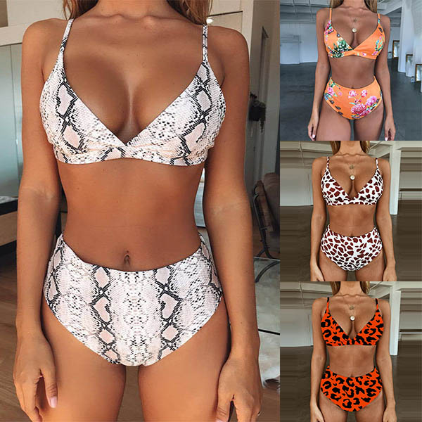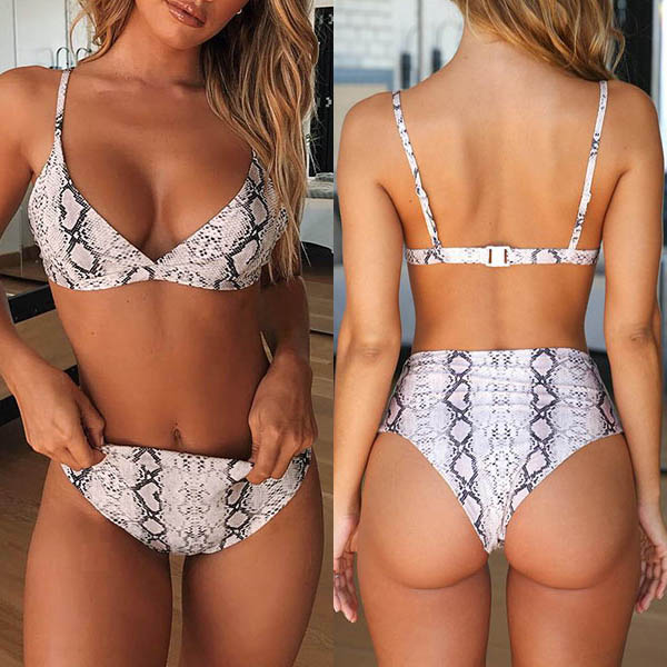 When you wanna head to the seaside to have a happy day,you can take this bikini set with you together. Features chic and eye-catching printed details,including a high waist bikini bottom and a backless bikini top,this bikini set can showcase your seductive curve while it maintains the comfy.
