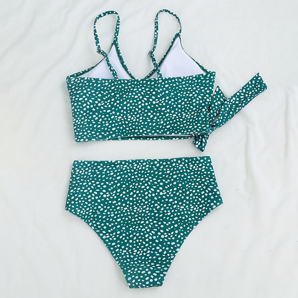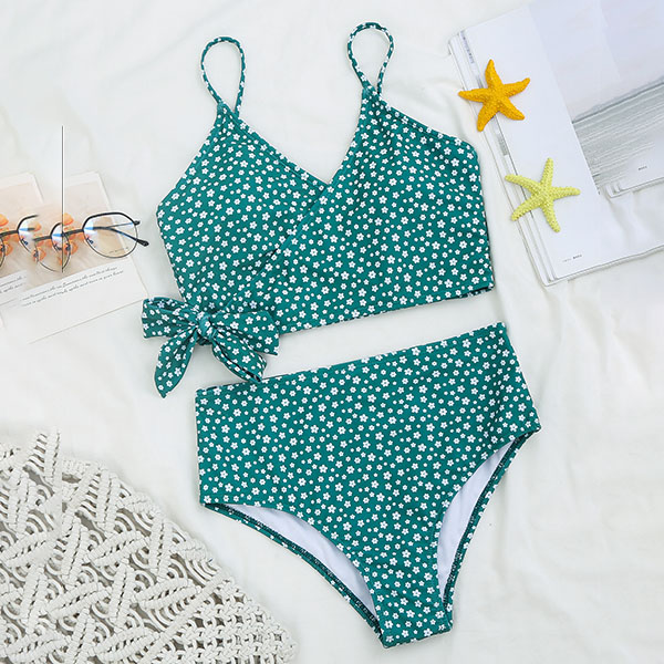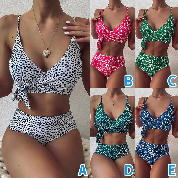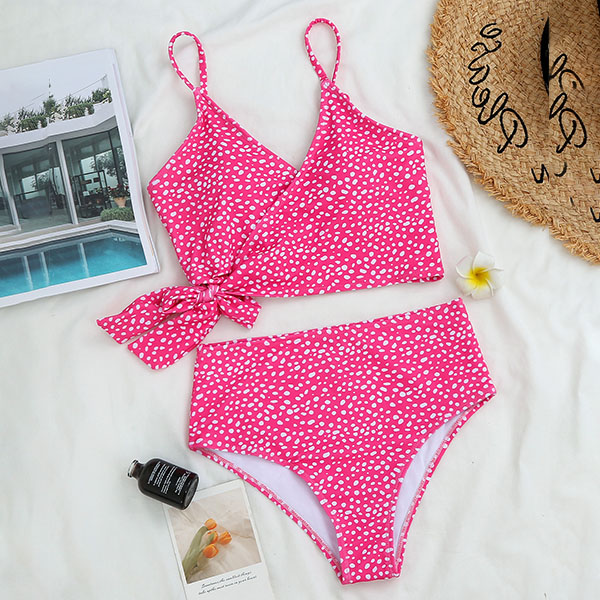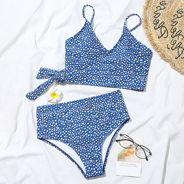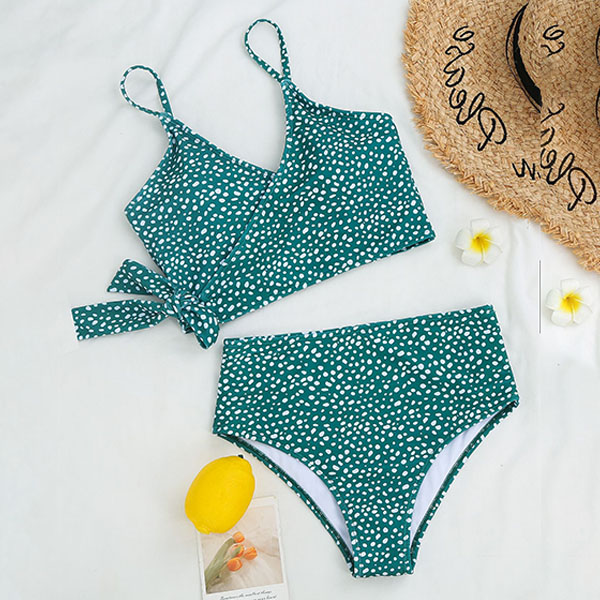 What an amazing sight when you are lying on the beach with this bikini set! Its chic printed details can help you catch more eyes. Including a crossover bikini top and a high waist bikini bottom,this bikini set is a good weapon to showcase your sexy and seductive curve. It is your perfect choice for your beach days and tropical getaways.