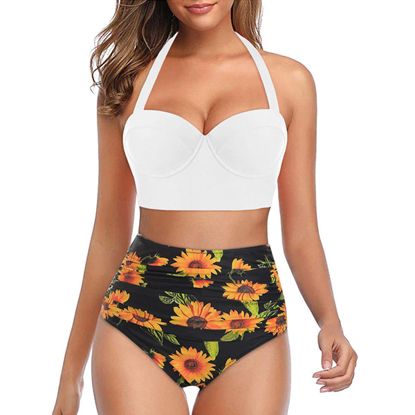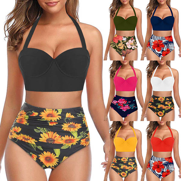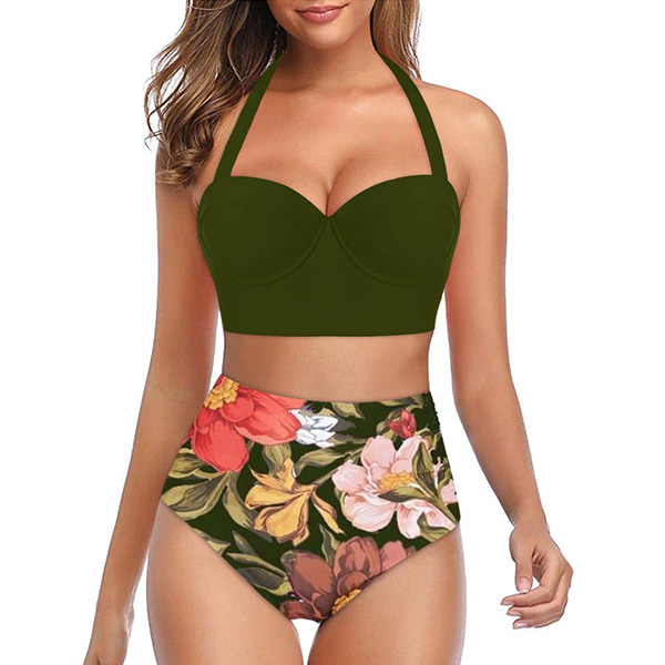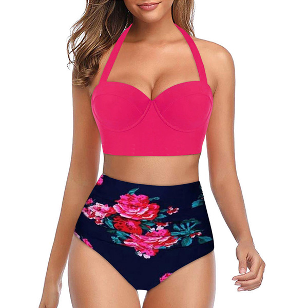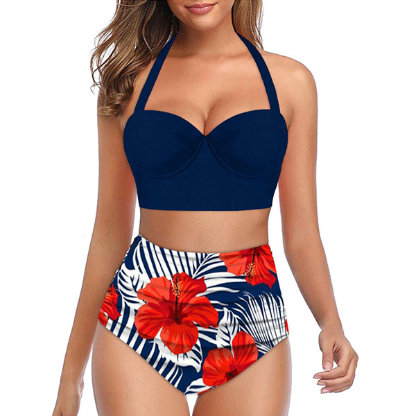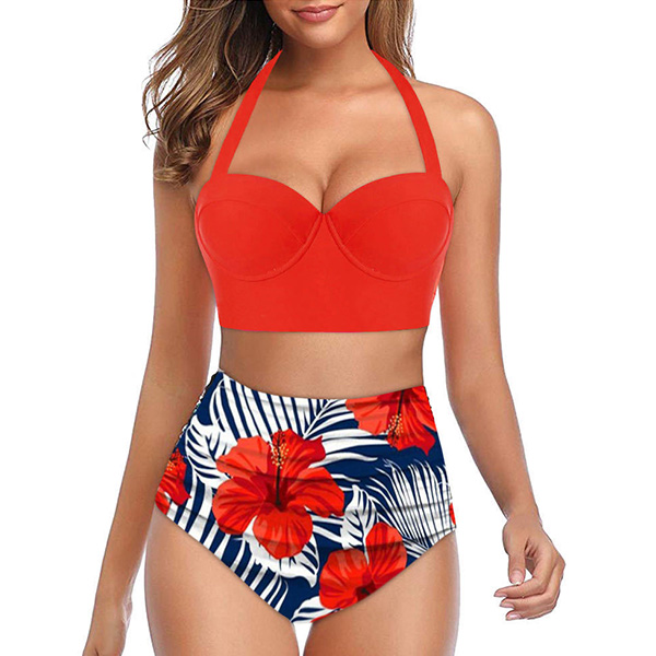 When the summer season hits,you can just head to the seaside to relax yourself with this bikini set. It consists of a high waist printed bikini bottom and a halter bikini top,this bikini set can showcase your sexy and seductive curve. Just slip into this bikini set to enjoy your beach days.