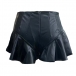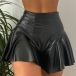 Sexy High Waist Ruffle Hem Solid Color PU Leather A-line Shorts