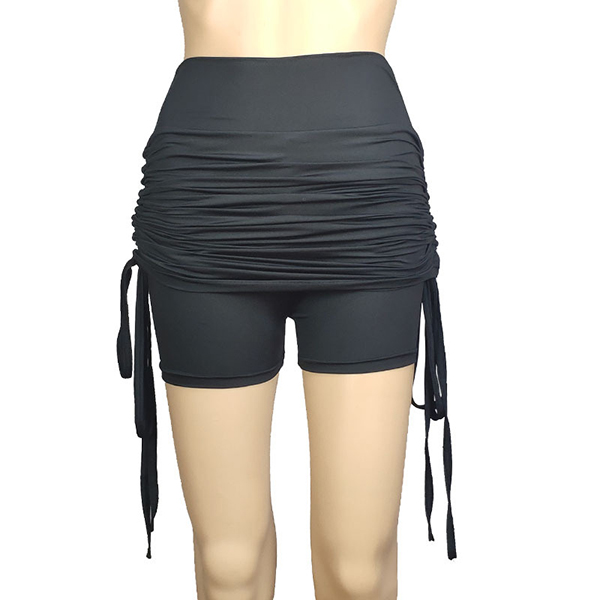 Sexy High Waist Side Drawstring Mini Skirt - Ruched Bodycon Skort with Built-in Shorts - 2-in-1 Tennis Yoga Skirted Shorts