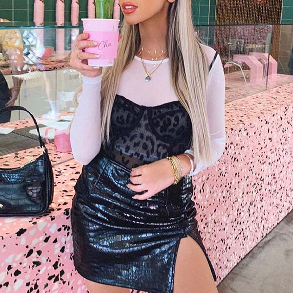 This skirt that exudes stylish,sexy and feminine charm is worth to arouse your attention. The high waist and fit silhouette design will showcase your slender figure,while the slit hem design can lend you a dash of sexy vibes. Try to match with your favourite top to finish a stylish and charming dress up.
