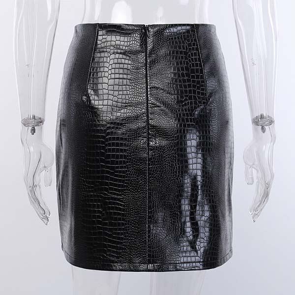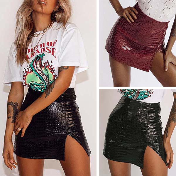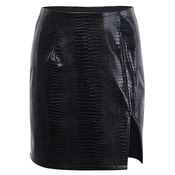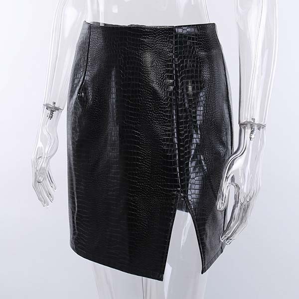 Sexy High Waist Slit Hem Slim Fit PU Leather Skirt