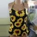 The sun-soaked summer days call for such a cozy,sexy and flirty top. Halter style,the backless and hollow out details make this piece look sexier,while the sunflower printed design can help you catch more eyes. Try to match with a shorts to start your wonderful day.