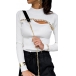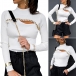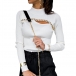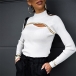 Sexy Hollow Out Chain Long Sleeve Mock Neck Slim Fit Bottoming Top