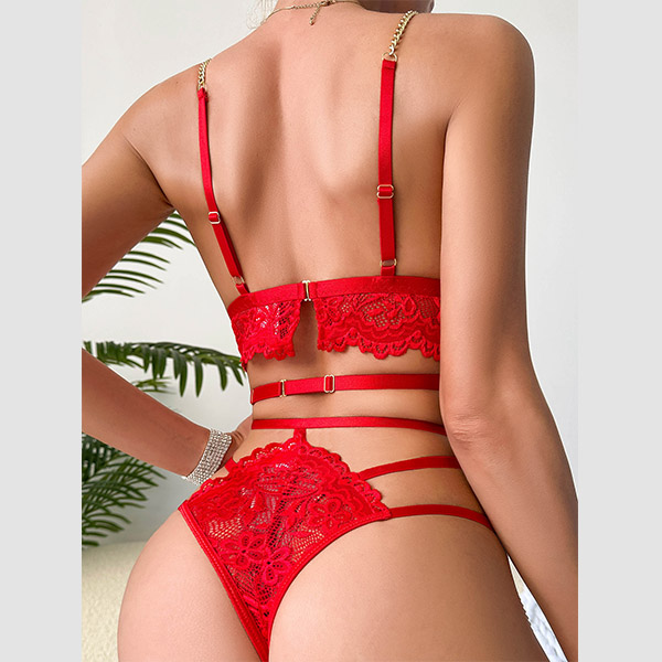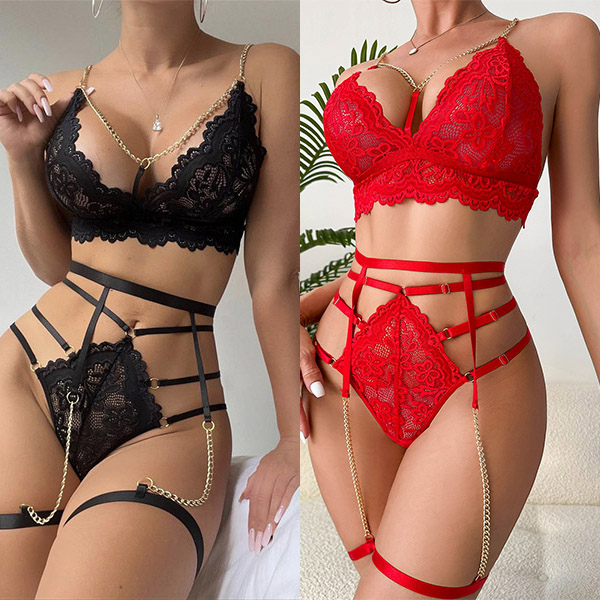 Sexy Hollow-out Chain Three-piece Lingerie Set