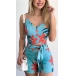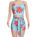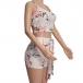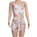 Sexy Hollow Out Crossover Halter Printed Top + High Waist Shorts Two-piece Set