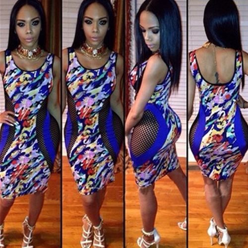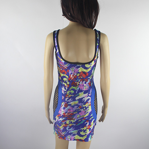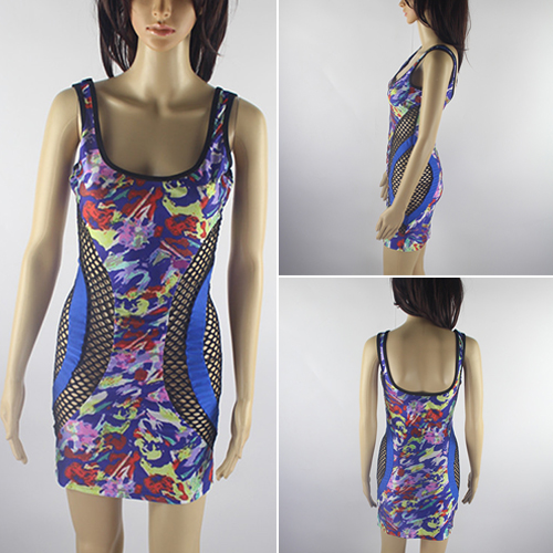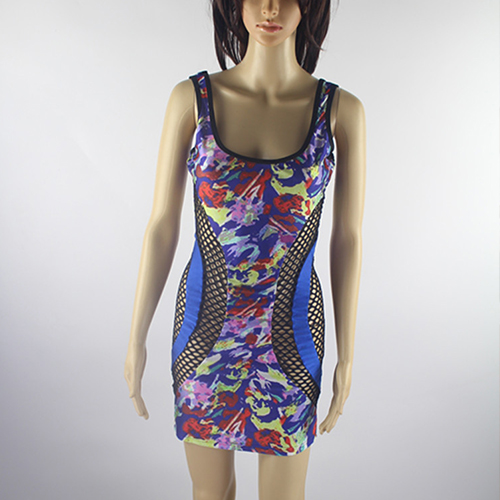 So how about this dress? Colorful floral print pattern,with hollow out gauze spliced design. In it,