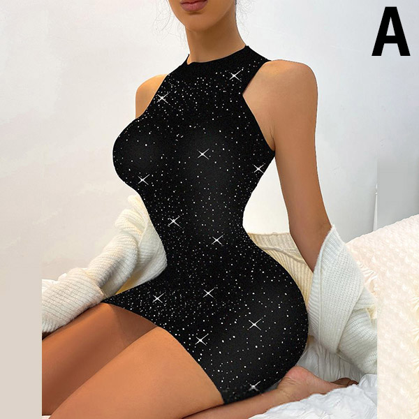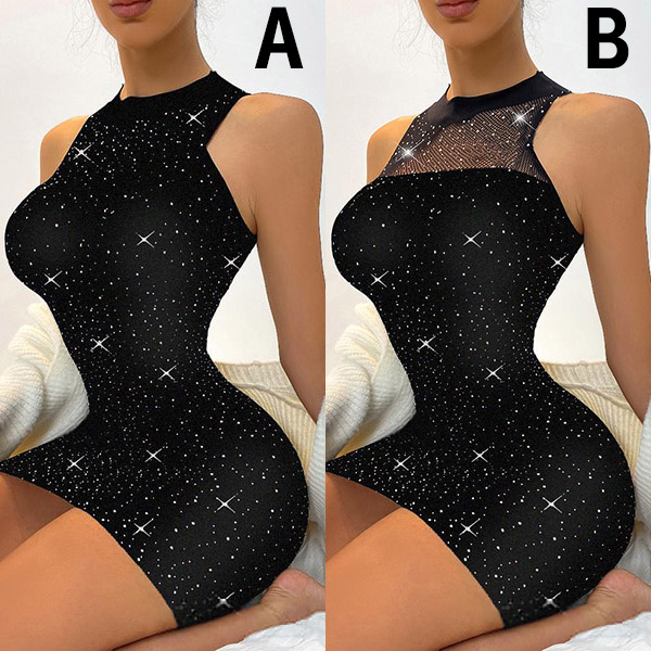 Sexy Hollow Out Gauze Spliced Sleeveless Round Neck Tight Dress
