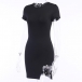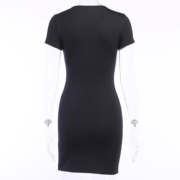 Sexy Hollow Out Hem Short Sleeve Round Neck Tight Dress