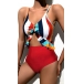 Sexy Hollow Out High Waist Contrast Color Sling One-piece Swimsuit