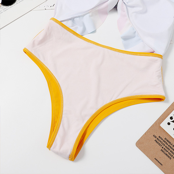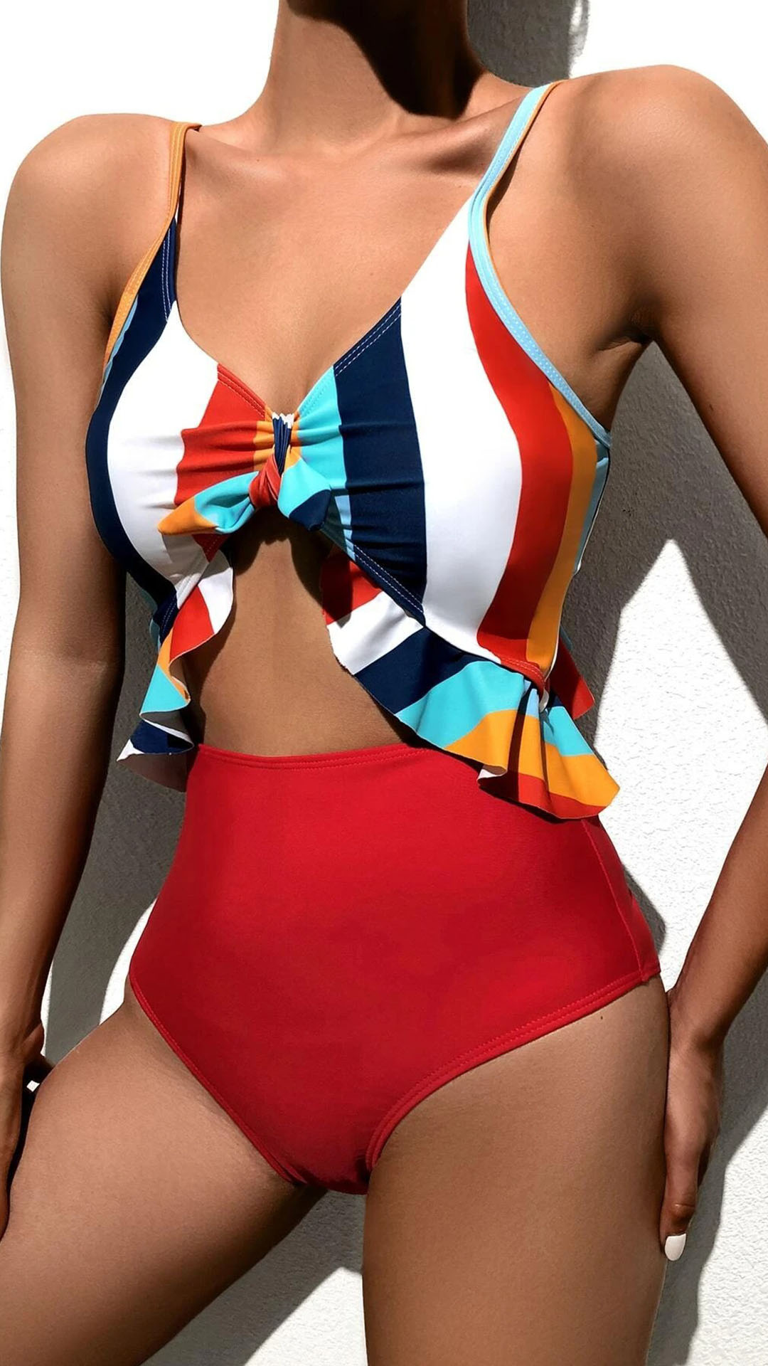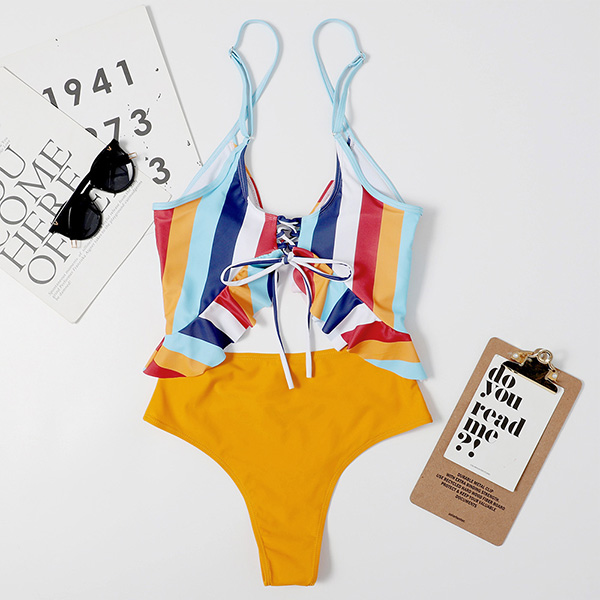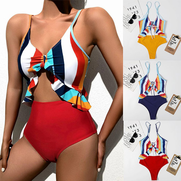 For your swimming days and beach days,this one-piece swimsuit can easily strike your mind. Sling style,the colorful stripe element and hollow out high waist design make this piece full of stylish and flirty vibes. When you slip into this piece,your seductive curve also can have a full display. Like it? Then buy one!