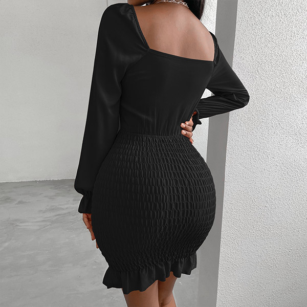 How could you look so sexy and alluring when you dress yourself up with this dress. The hollow out high waist,knotted v-neck and ruffle hem design make this piece look so alluring and stunning. No matter when and where you are,you can easily be the focus in this dress.