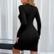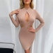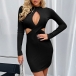 Sexy Hollow Out High Waist Long Sleeve Mock Neck Solid Color Slim Fit Dress