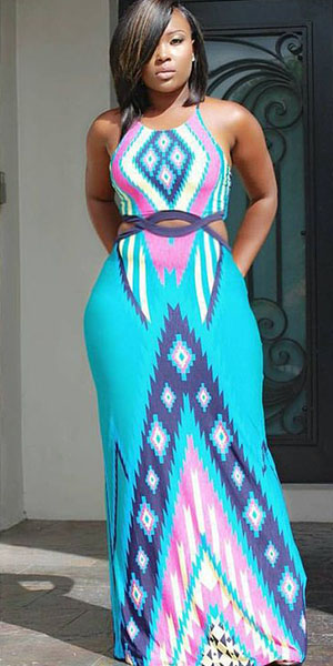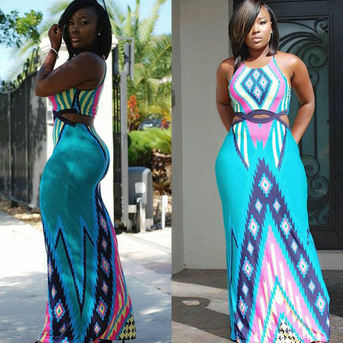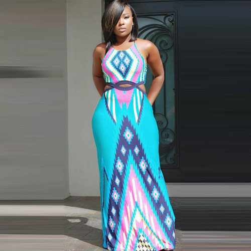 Sling style,with chic floral print,maxi length and hollow out high waist design,this maxi dress will