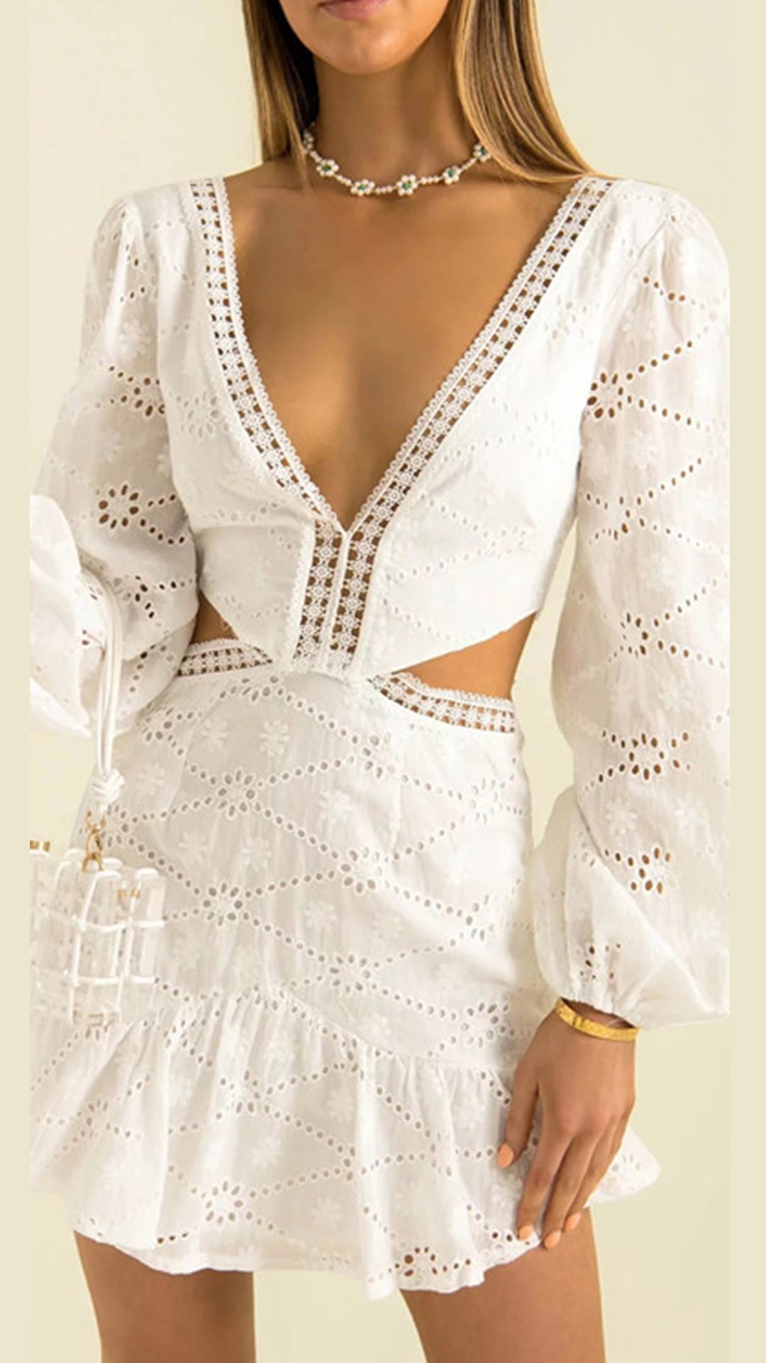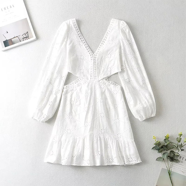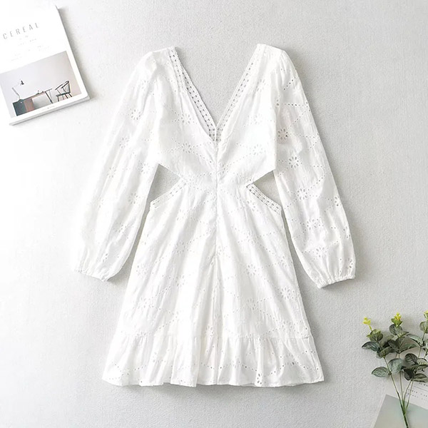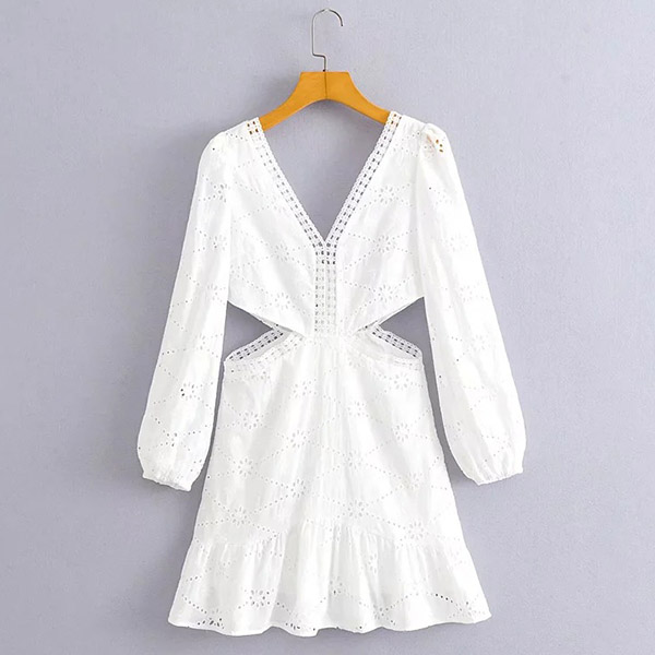 Express your charming femininity through a flirty dress such as this creation. The deep v-neck,hollow out high waist and ruffle hem design make it look so sweet,sassy and charming. When you have a dating with your friends or lover,you can trust in this dress to gain their eyes.