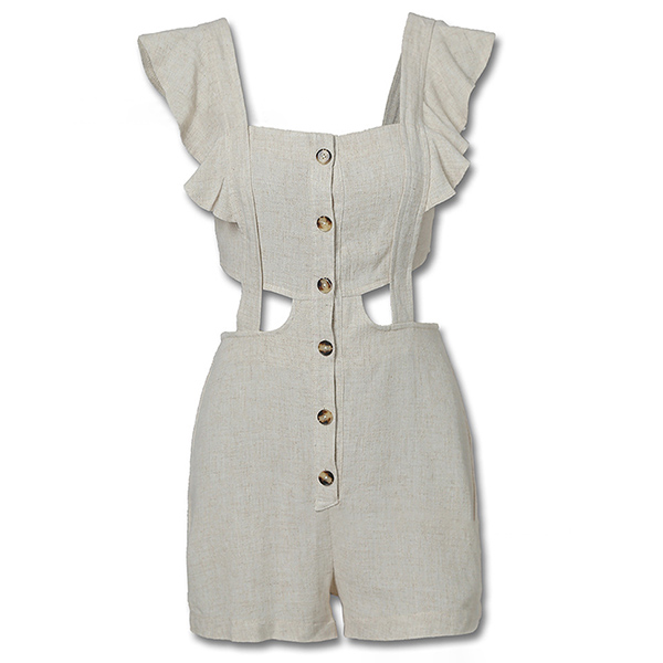 Your style can have an instant boost when you wear this romper. Solid color style,the hollow out design at the waist part and ruffle details can exude your sexy,flirty and feminine side. You can just slip into this wonderful top to upgrade your style.