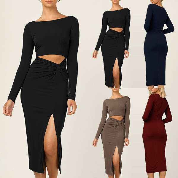 You are sure to win more eyes when you dress yourself up with this dress. It comes with a solid color,the hollow out waist and slit hem design can offer you a more alluring look,while the fit silhouette design can showcase your slender figure. When you wanna express your beauty and charm,this dress can be your perfect weapon!