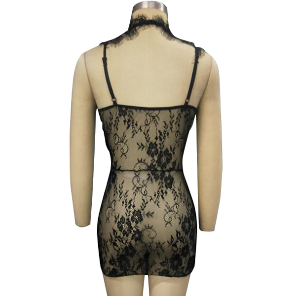 Sexy Hollow Out Lace Sleeveless Mock Neck Slim Fit Dress