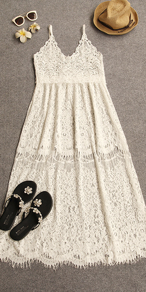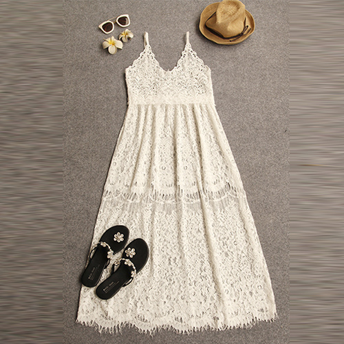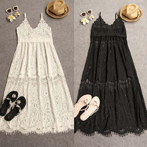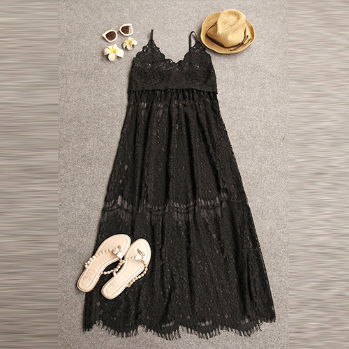 This dress features sling style,with hollow out lace design,sexy and feminine.