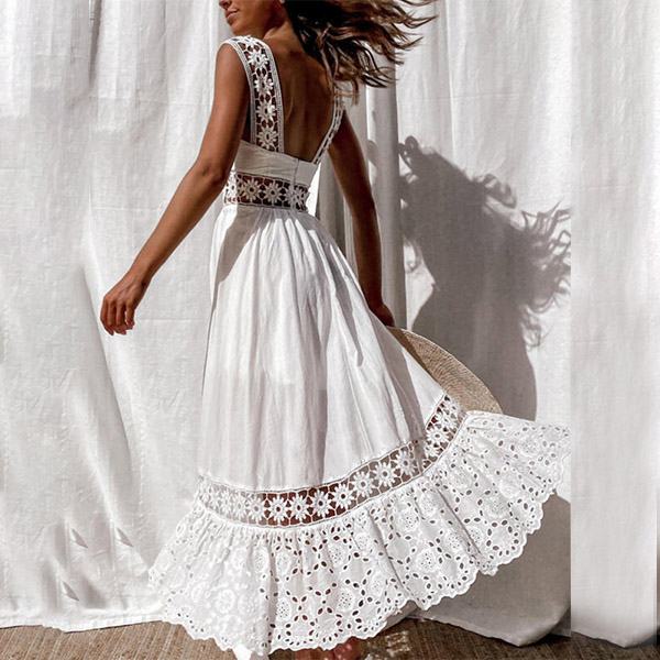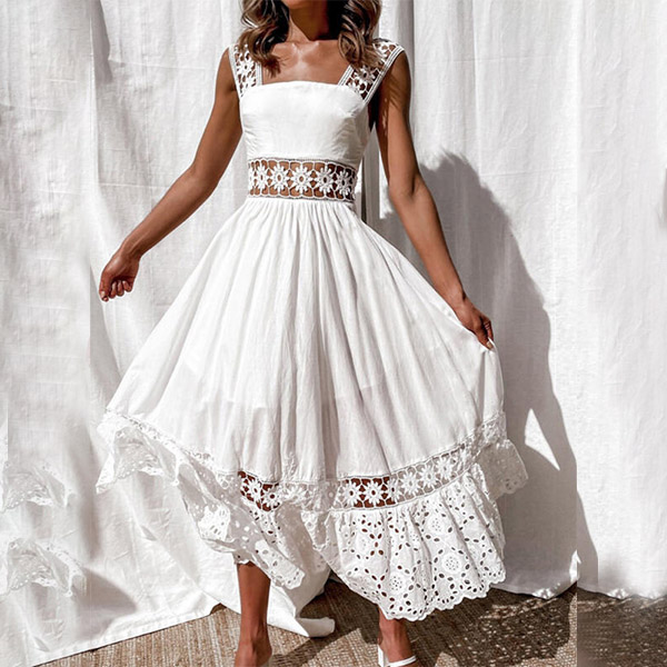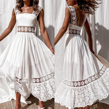 Sexy Hollow Out Lace Spliced Backless High Waist Sling Dress