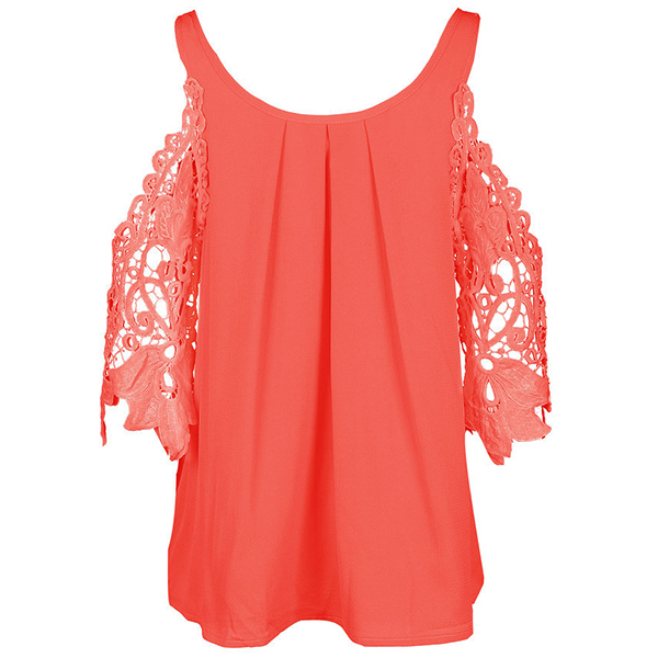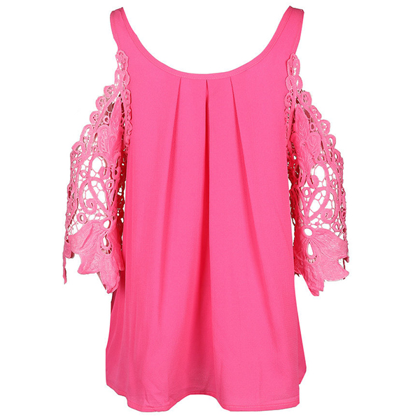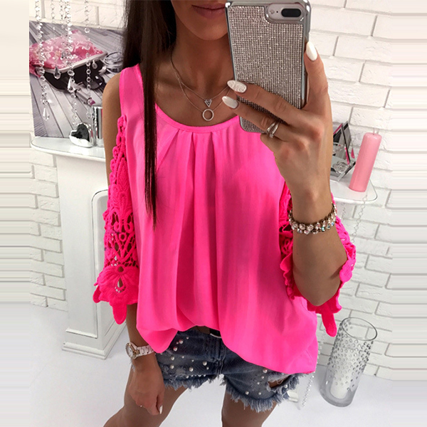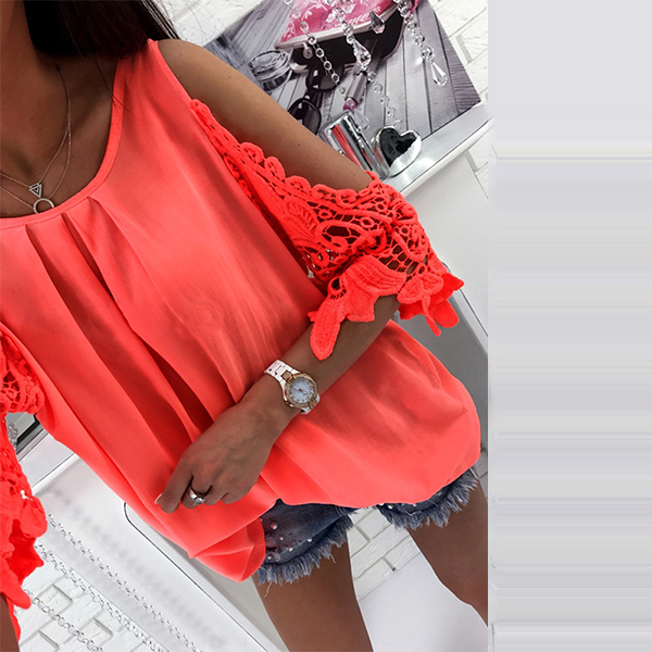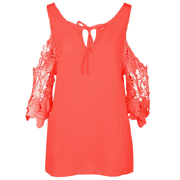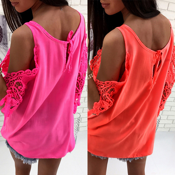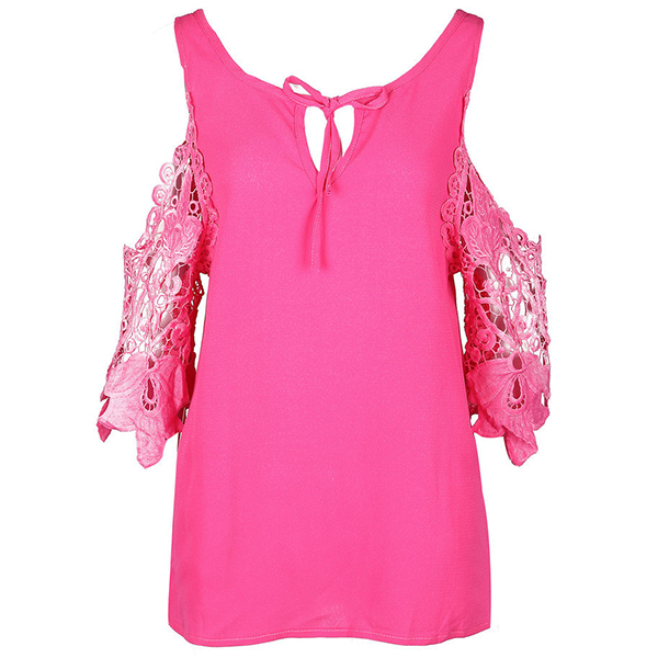 Solid color style,its off-shoulder and hollow out spliced design is the most distinctive part. Match it with your denim shorts to