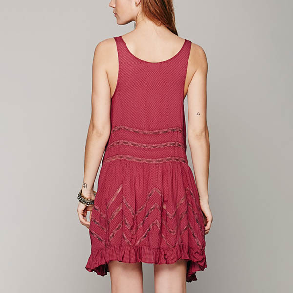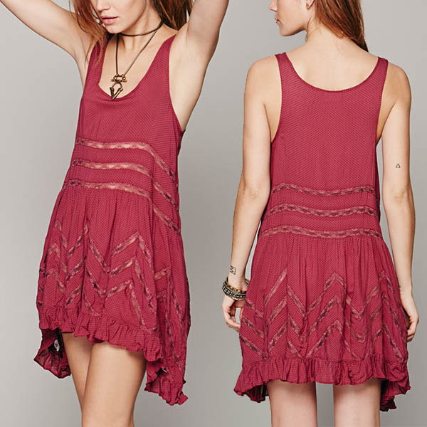 A summer essential - add this sleeveless dress to your wardrobe and you won't be disappointed. The hollow out lace spliced and high-low hem design are the highlights,which can can exude your flirty and feminine side. Simply matching with your favourite shoes for a charming and stylish look.