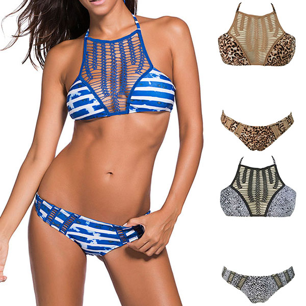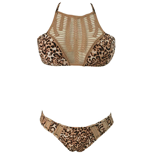 Leopard print design,with hollow out lace spliced design,chic and sexy. Easy to make a splash on the beach or