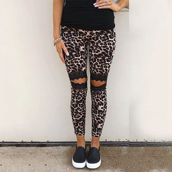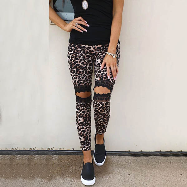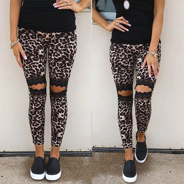 No matter when and where you are,you can easily gain more eyes when you wear this eye-catching pants. Designed with leopard printed details,the lace spliced and hollow out design at the knee part make this piece look more attractive. When you wanna try a different style pants,you can just have a look at this piece.
