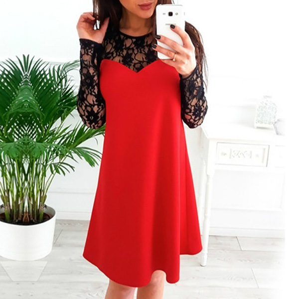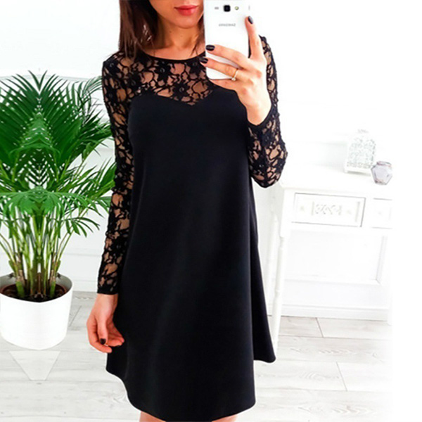 If style and comfort is what you're seeking for,then this dress is sure to strike your fancy. The hollow out lace spliced design can exude your sexy and feminine side,while it soft fabric,breathable fabric can offer you a comfortable day. For your daytime out or night dating,this dress can be a good choice.