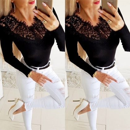 When you are looking for a stylish and all-match top,then look no further than this piece. Solid color style,the hollow out lace spliced details will lend you a dash of sexy and flirty vibes,while the fit silhouette design can showcase your perfect body-line. Perfect fit for matching with different style bottoms.