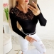 Sexy Hollow Out Lace Spliced Long Sleeve Round Neck Slim Fit Top