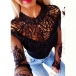 Sexy Hollow Out Lace Spliced Long Sleeve Round Neck T-shirt