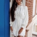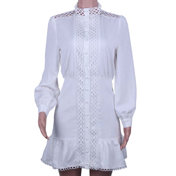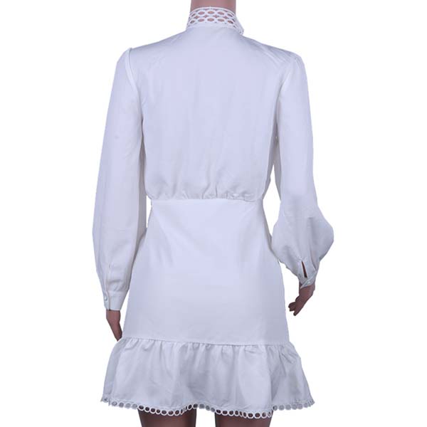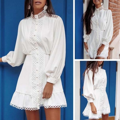 Sexy Hollow Out Lace Spliced Long Sleeve Stand Collar Dress
